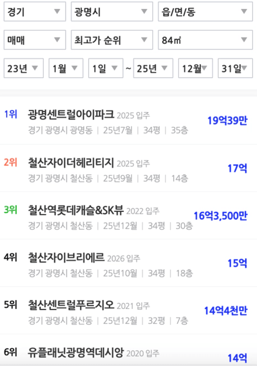 광명시는 철산 재건축과 광명의 재개발이 동시에 진행되면서 지역 급지의 위상 자체가 바뀌고 있다. 경기도에 이정도 입지에서, 이렇게 대규모로 신축밭이 되는 지역은 광명이 유일하다. 내가 24~25년 상반기