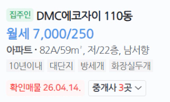 6개 남짓이라는 건 정말 전세가 없다는 뜻입니다.