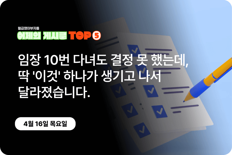 [어제의 게시글 Top5] 임장 10번 다녀도 결정 못 했는데, 딱 '이것' 하나가 생기고 나서 달라졌습니다.