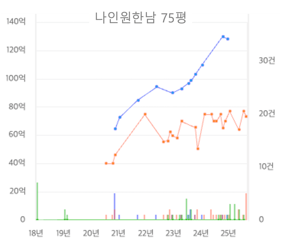 ☑️ 가격. 100평 최고실거래가 250억 원 / 75평 기준 현재 시세 약 145억 원 / 최근(26년 3월) 실거래가 75평 156억 원