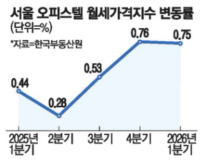 월세 상승세는 더 가팔랐는데요. 서울 오피스텔 월세는 1분기에 0.75%나 올랐습니다.