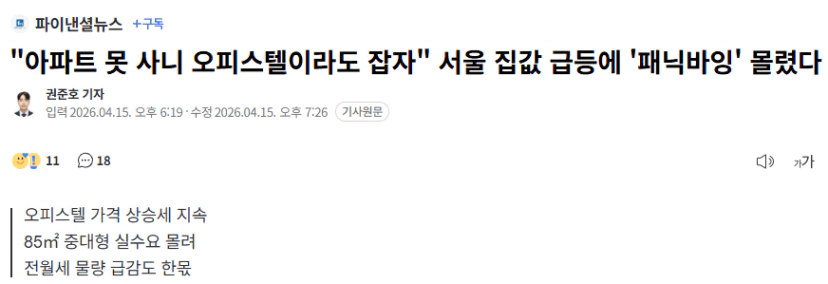 "아파트 못 사니 오피스텔이라도 잡자" 서울 집값 급등에 '패닉바잉' 몰렸다