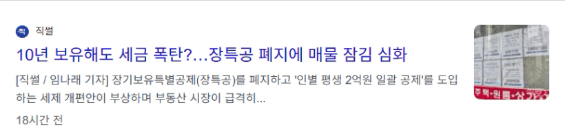 장특공은 오래 보유하면 세금을 크게 깎아주는 구조인데 문제는 실거주 목적이든 투자 목적이든 둘 다 동일하게 혜택을 받았다는 점으로 정부 입장에서는 “자산이 많이 오른 사람일수록 더 크게 감면받는 구조”→ ‘이것을 손보겠다’는 의도로 해석됩니다. 결국 부동산으로 돈버는거 못하게 하겠다는 것입니다.
