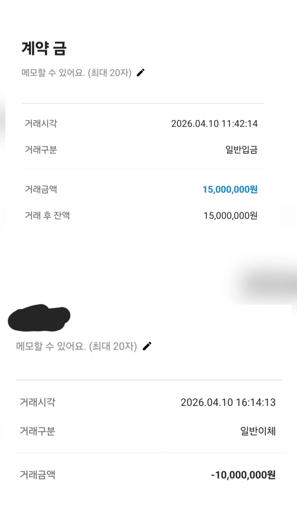 매도 계약금을 받고나서 4시간 만에 매수 가계약금을 이체했습니다