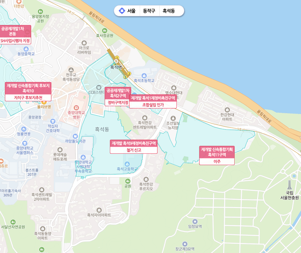 아직 완성되지 않은 구역들이 마무리되면 흑석동 전체가 신축 아파트 타운으로 완성되는 거예요.