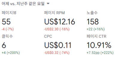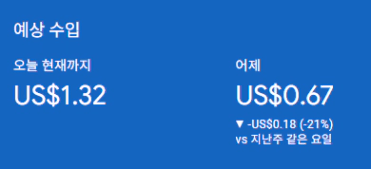 노출수와 클릭수는 증가했지만 수익은 미미하게 올라갔어요.