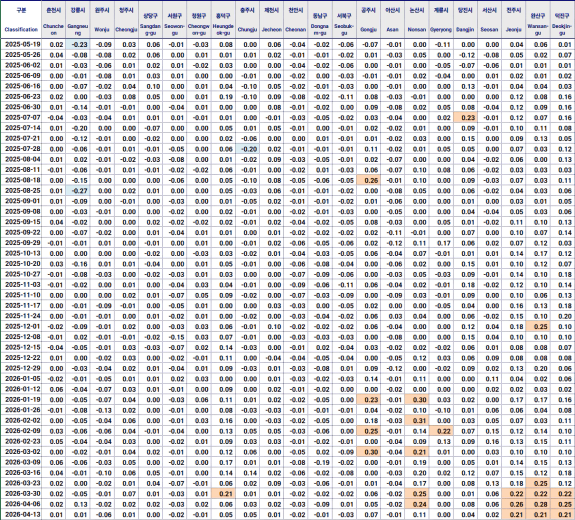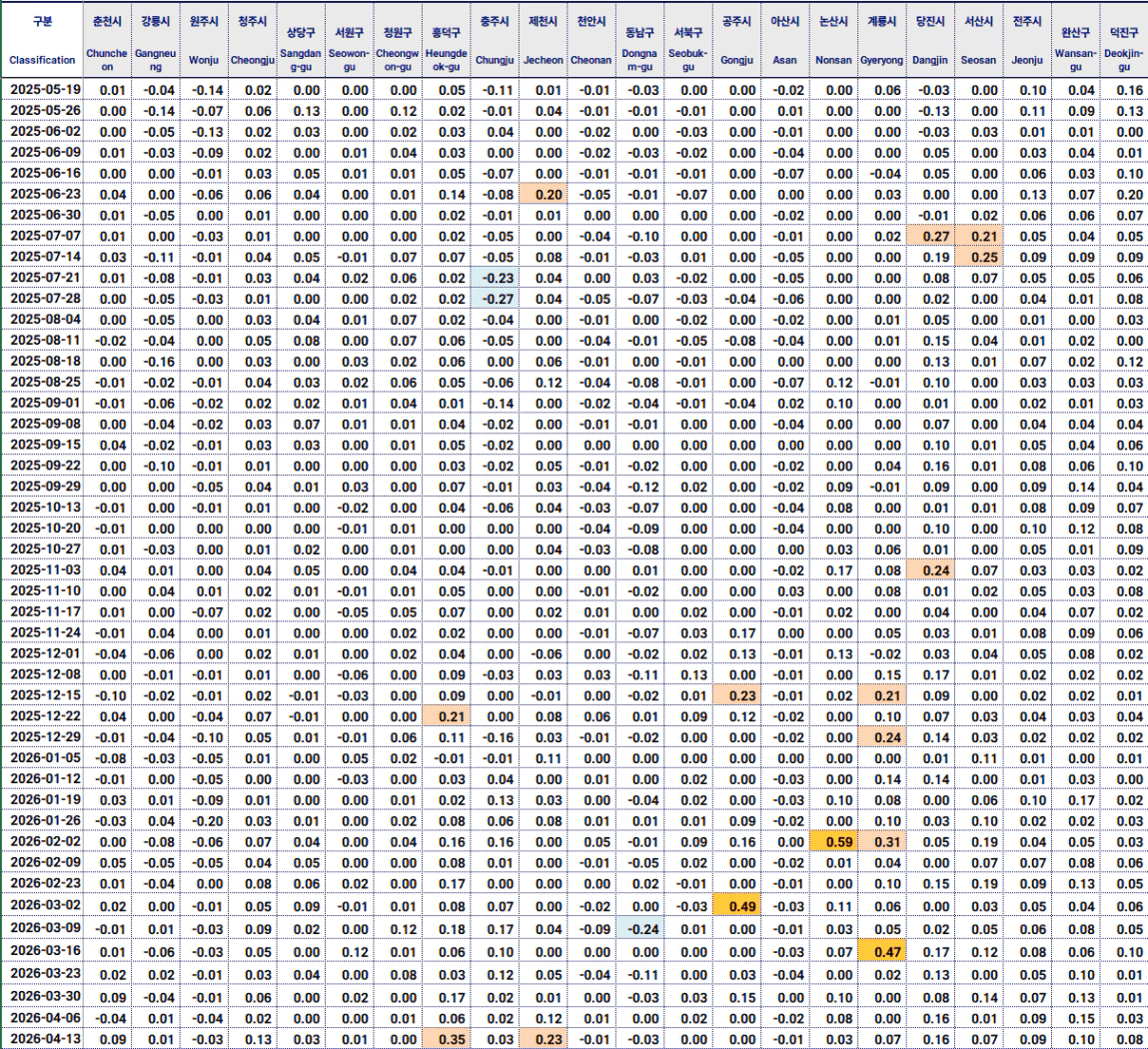 청주 청원구 -0.01%