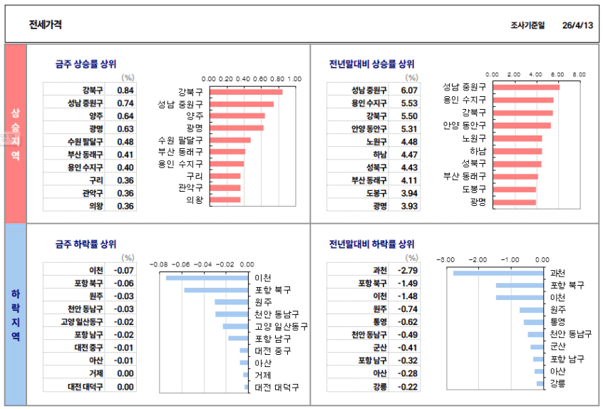 4월 3주차 주택시장동향 조사결과입니다.