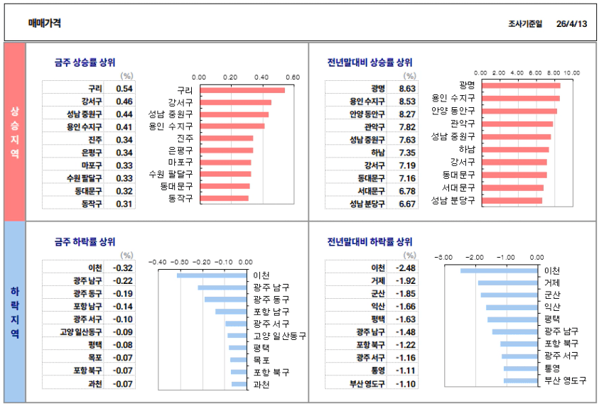 ※ [KB리브온] 지역별 집값 상승률(매매/전세 시계열) : 매주 금요일 업데이트