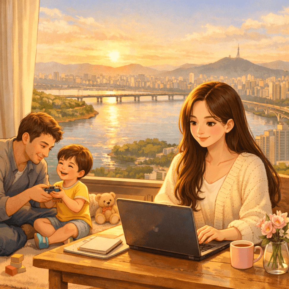 저는 가정의 행복을 인생의 0순위로 생각하는데, 월급을 위해 사랑하는 남편과 아이와 시간을 보내지 못하고 직장에 가는 어려움을 겪고 싶지 않았습니다.