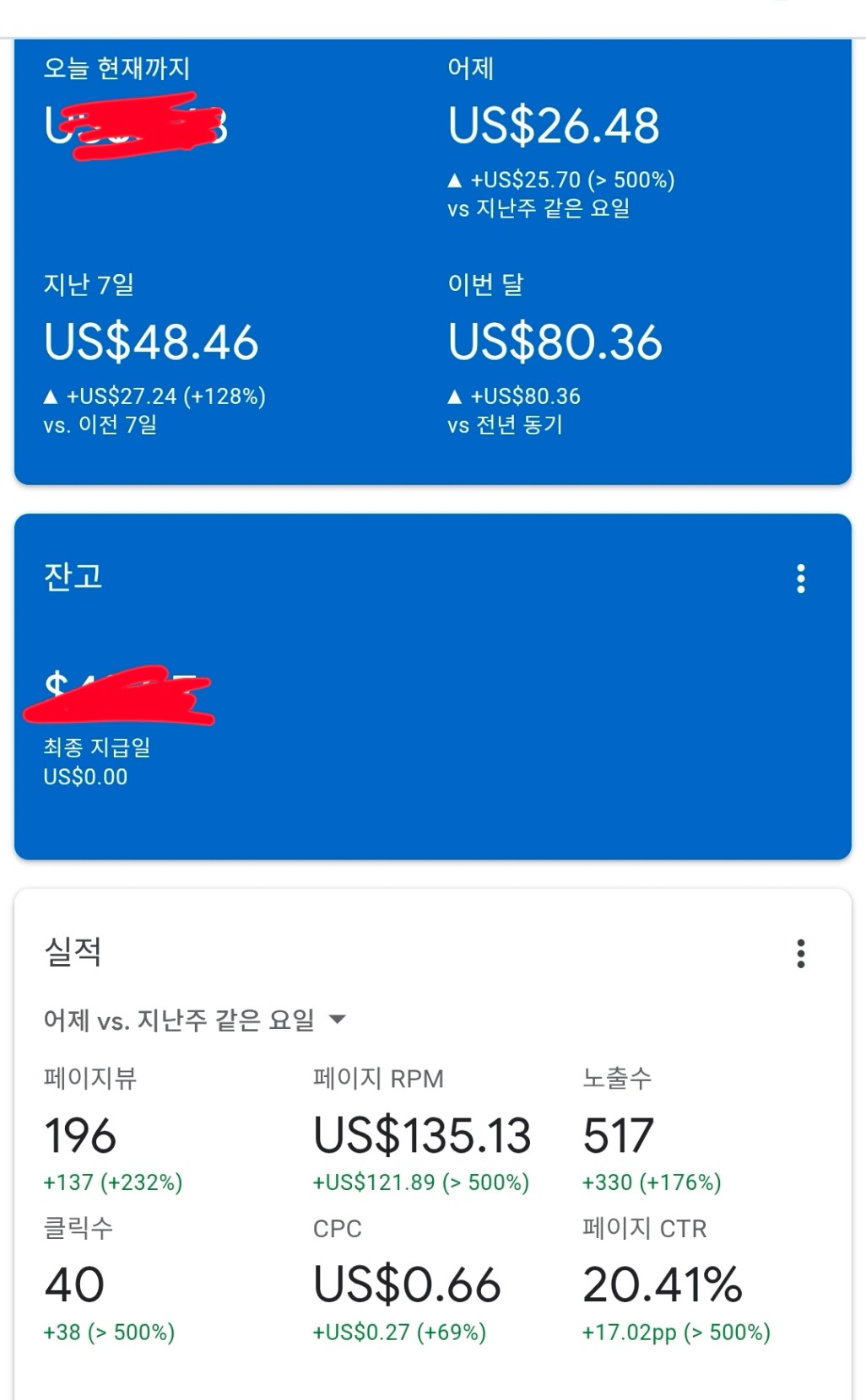 어제 처음으로 일 26달러라는 최고수익 달성했습니다! 홈판노출 덕분에 하루 20불넘기는 경험도 해보네요 덕분에 이번달 목표 100달러 달성에 더욱 가까워졌습니다. 감사합니다!
