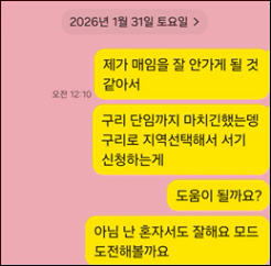웬일인지 후회하지 않으려면 이거라도 해보자는 마음이 들어