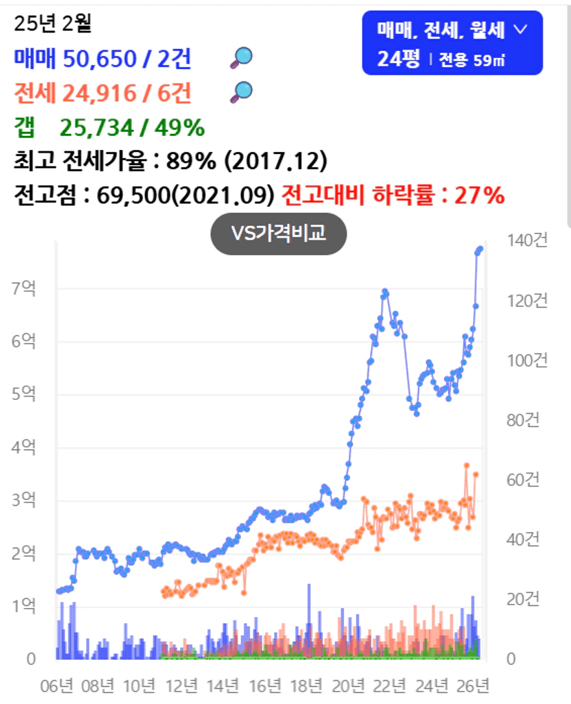상승장이기 때문에 드라마틱한 차이가 난 것도 있지만, 아무리 돈을 열심히 모은다고 하더라도 집값이 상승하는 것을 따라가기는 쉽지 않다. 화폐가치가 계속해서 하락하기 때문에 사람들이 선호하는 단지고, 가격적으로 저평가 구간이고, 내가 감당가능하다고 하면 사는게 맞다. 당장은 가격이 떨어질 수도, 혹은 보합할수도 있지만 몇 년 후에 집 산 것을 후회할 사람은 없다.
