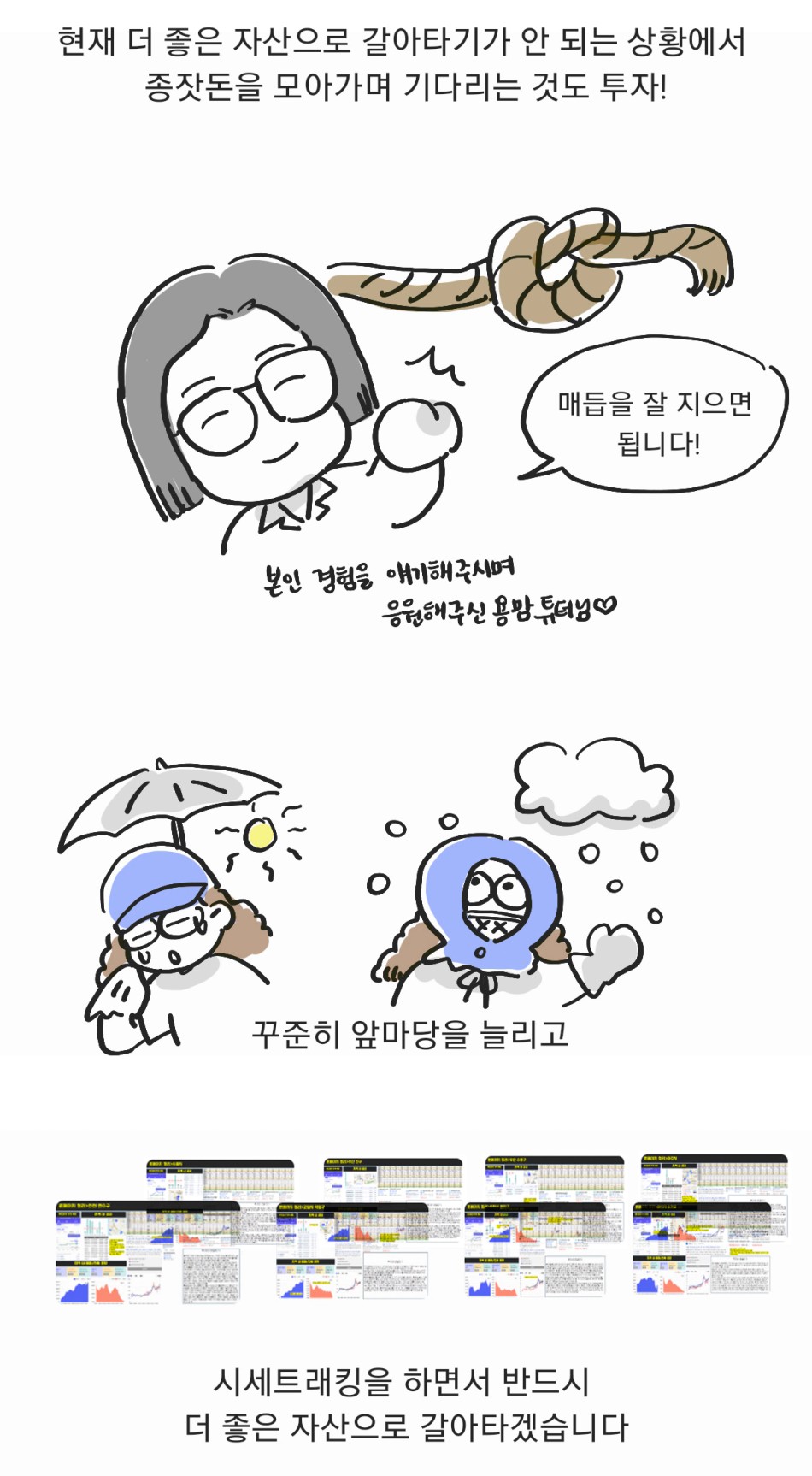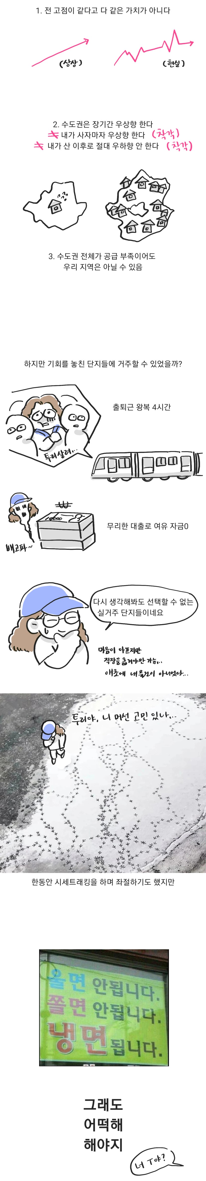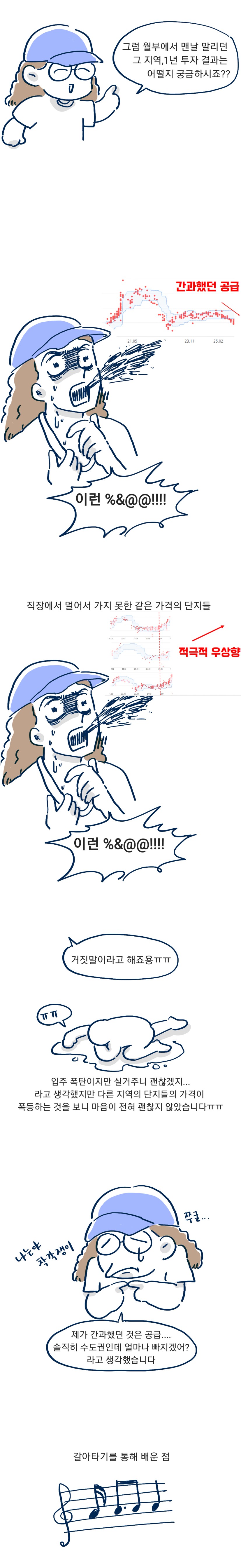 현재 저는 공급이 정리되고 교통 호재 실현까지 지켜보기 or 종잣돈을 지독하게 모아 갈아타기 등의 선택지가 있습니다. 언제나 시장은 대응의 영역이라는 것을 또 몸소 배워가며 독강임투를 꾸준히 해보겠습니다.