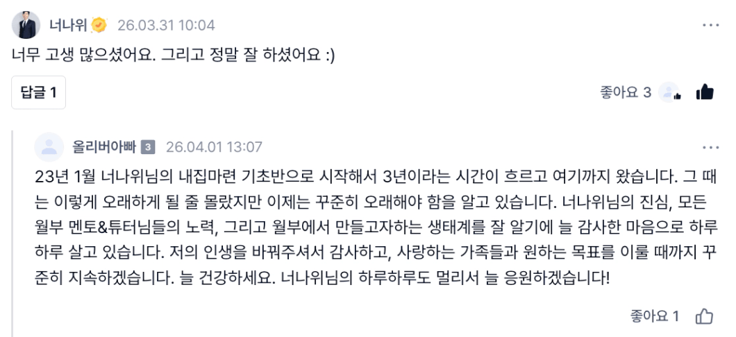 3월 말에 월부 3년을 되돌아보는 투자 후기를 남겼고,