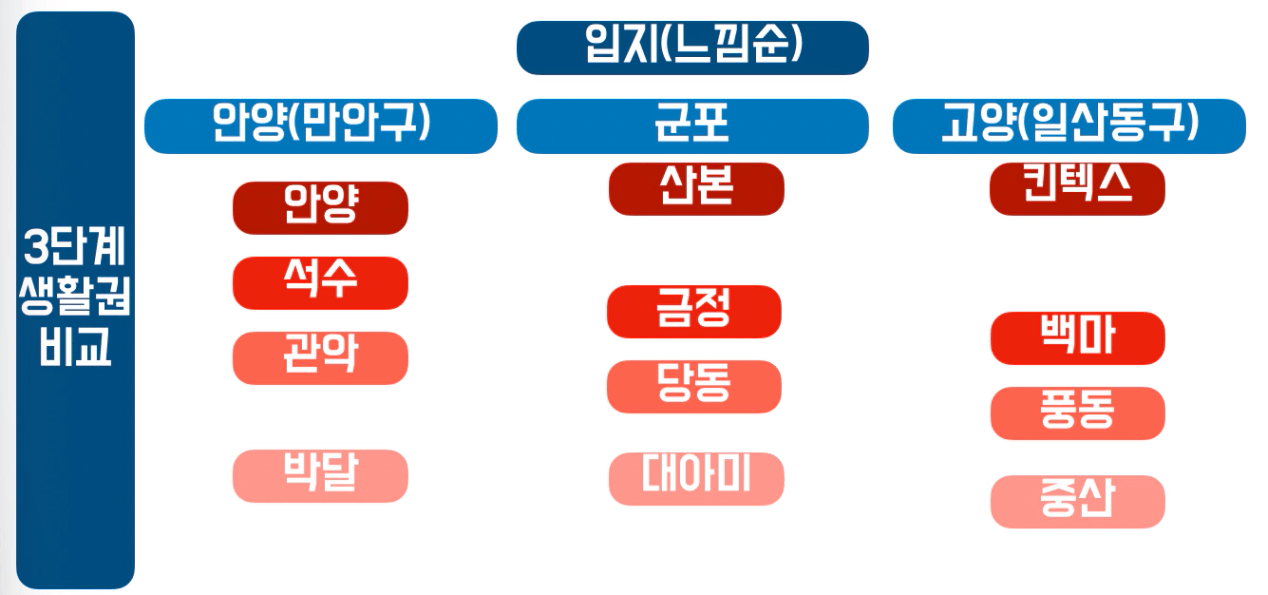 산본 > 안양 > 석수 > 관악 생활권 순으로 투자대상을 선정하겠다는