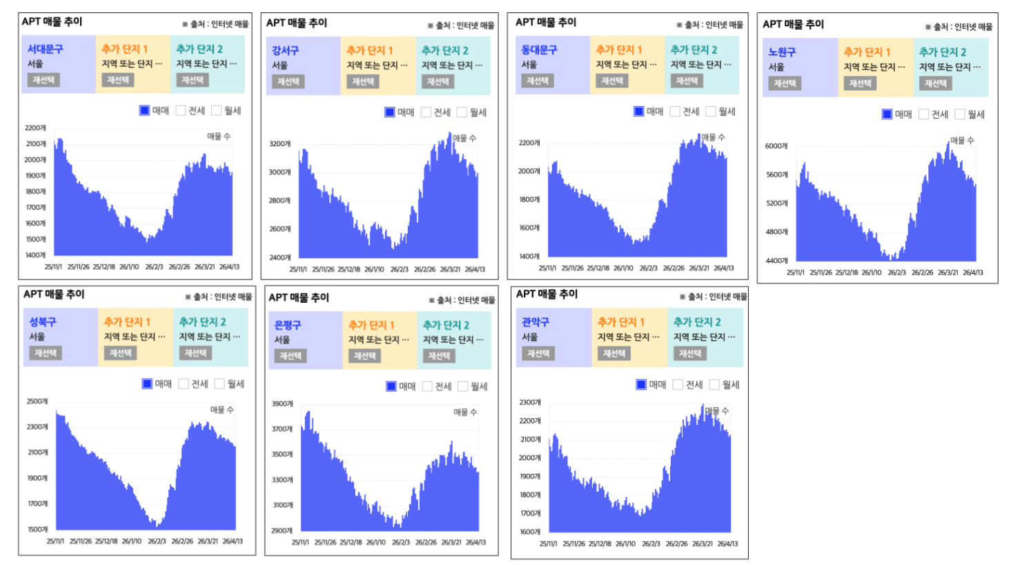 최근 매물증감으로 보면, 기회를 주고 있는 지금과 같이 언제든 시장에서 기회가 만들어 질 수 있습니다. 긴 호흡으로, 매수한 물건을 잘 보유해나가면서 앞으로의 기회도 잡을 수 있는 노력을 게을리하지 않는 투자자가 되도록 정진하겠습니다.