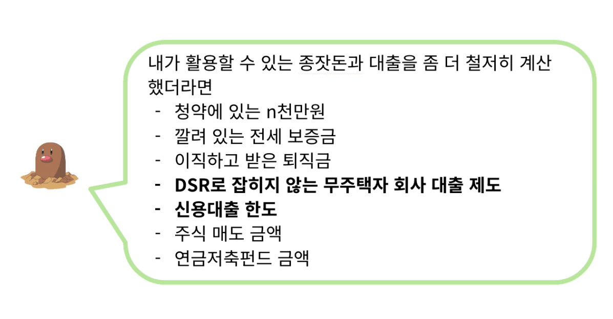 꽤 괜찮은 단지를 찾았다는 생각이 들었지만, 대출에 대한 이해도 부족했고, 매물임장까지 더 행동으로 옮기지 못했습니다. 지금 돌아보면, 왜 그렇게 고민 했을까 싶지만 ㅎㅎ 종자돈에 청약에 넣은 돈을 포함시켜도 되는지, 주식에 넣은 돈과 개인연금으로 가지고 있는 돈은 어떻게 할건지, 한번에 가진 목돈을 다 넣어야만 할 수 있는 서울 내집마련에 대한 확신이 참 부족했습니다.
