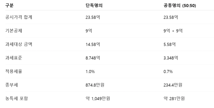 💡 절세 팁: 다주택자라면 공동명의를 검토하세요
