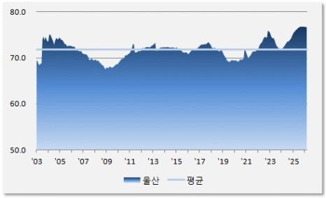 2026년 3월 전세가율은 76.7%로 중장기 평균 71.8% 比 1.07배 수준입니다. 최근 1년반 가량 전세가율이 정체 상황이나 그럼에도 불구하고 여전히 6대 광역시 중에서 전세가율이 가장 높은 수준입니다. 특히 광역시 중에서 매매가가 가장 빨리 반등하였음에도 불구하고 여전히 높은 전세가율이 울산 부동산의 매력을 높여주고 있습니다.