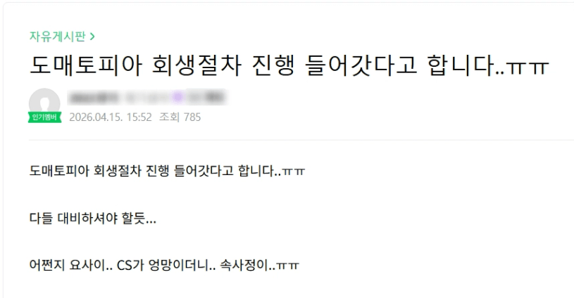도매토피아 카드결제 안되는 게 궁금해서(원래 카드결제로 진행했었는데 지난번부터 계좌입금만 되길래 말이죠;;;;) 셀포터에서 검색하니 갑자기 저런 놀라운 소식을 접하네요.