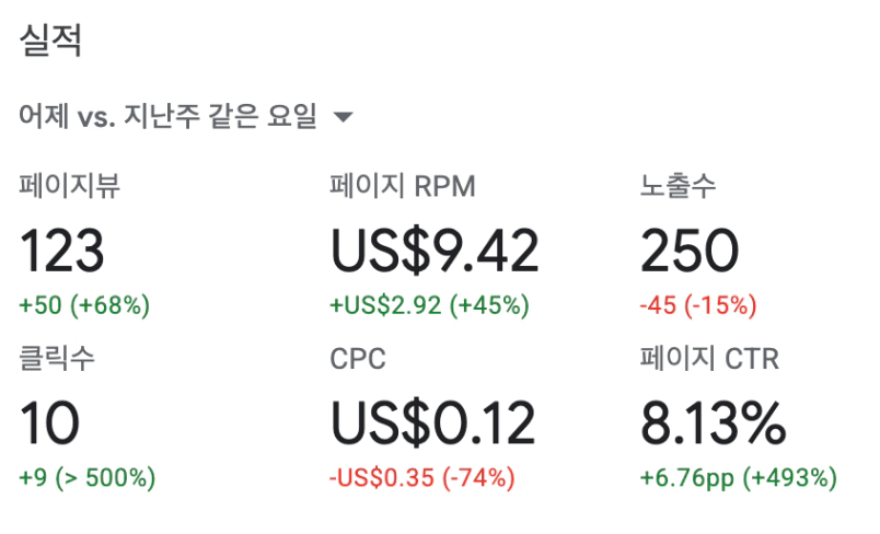 클릭수는 확실이 저번주 보다 많이 개선 된 것 같습니다.
