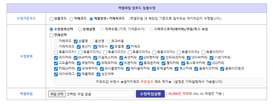 제품번호+거래처코드 > 수정항목선택