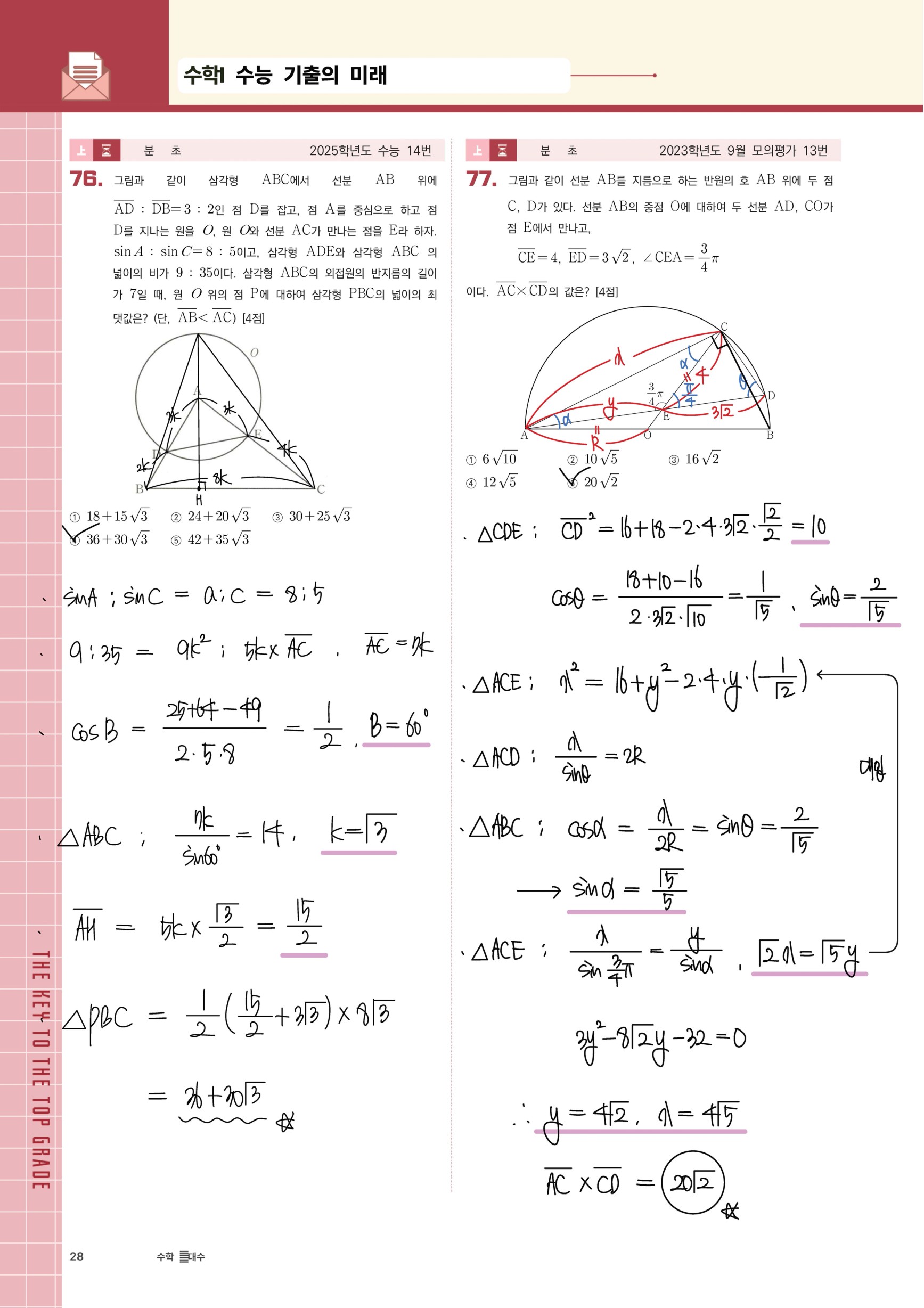 *손풀이(하단사진) : 학생들이 기존 해설지를 보는 걸 어려워하기에 쉬운 풀이를 손으로 직접 작성한 것
