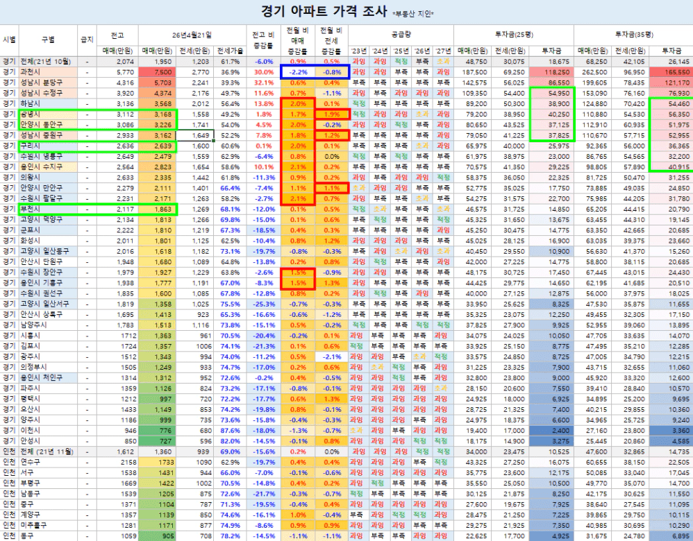 [경기 아파트 평당가 특징]