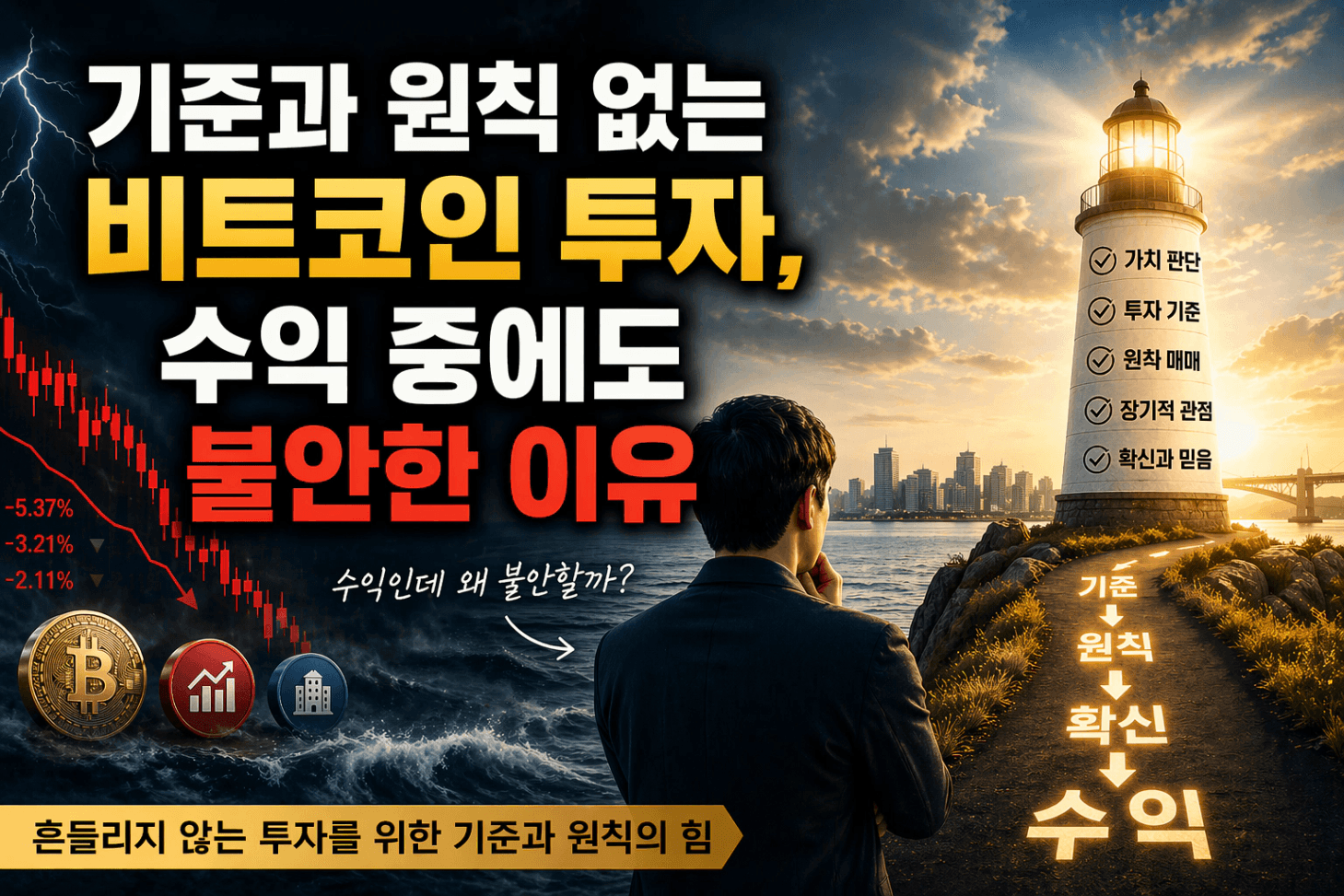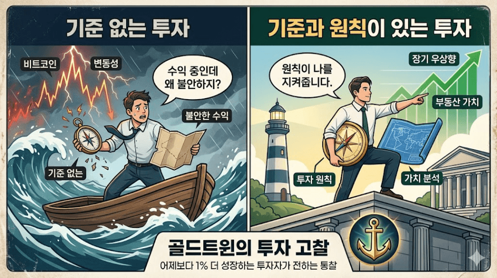 이번 투자를 통해 깨달았습니다. 투자의 고통은 자산의 가격이 떨어질 때만 찾아오는 것이 아니었습니다. 내가 무엇을 하고 있는지 모를 때, 즉 '나만의 기준'이 없을 때 투자는 가장 고통스럽다는 것을 뼈저리게 느꼈습니다.