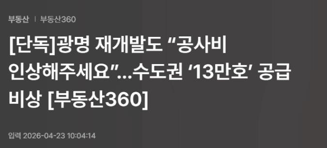 원자재 수입이 어려워지면서 건설업에 미치는 영향도 무시할 수 없습니다. 오늘 올라온 기사를 보니 광명 9구역 시공사에서 자재 수급이 힘들어져 공사비 인상 및 공사기간 연장을 요청했다고 합니다.