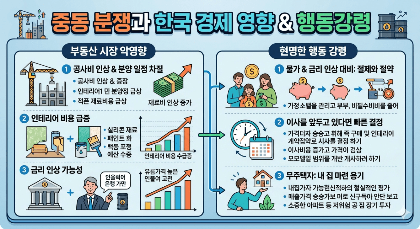 오늘은 중동 전쟁이 장기화 되면서 부동산 시장에 미칠 수 있는 악영향과 어떻게 대응해야 하는지 담아 보았는데요. 혼란스러운 시장일수록 기준과 원칙을 잘 잡으면서 앞으로 나아가는 선택을 하셨으면 좋겠습니다.