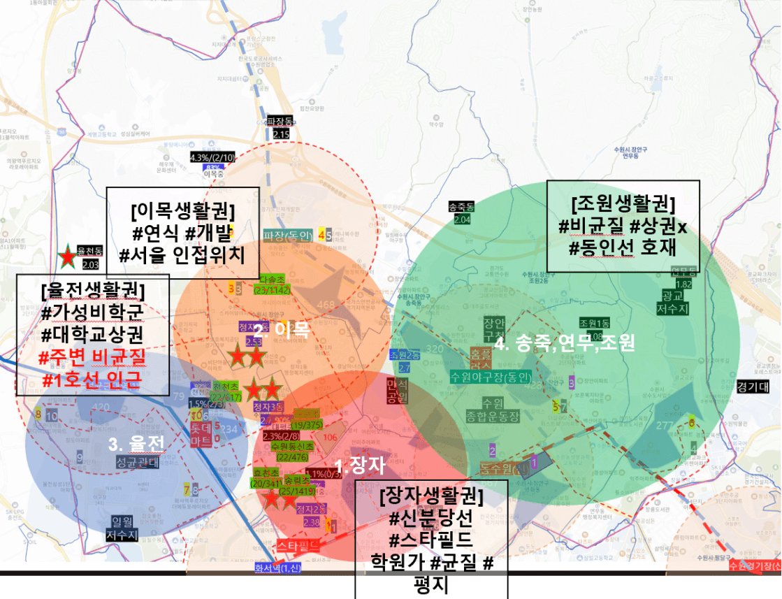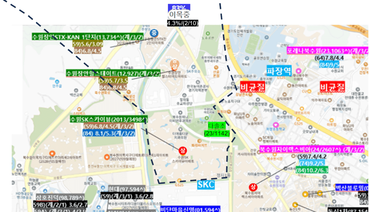 *파란색 - 장안힐스 / 빨간색 - SK스카이뷰
