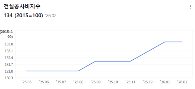 한국건설기술연구원이 발표하는 건설공사비지수를 보면