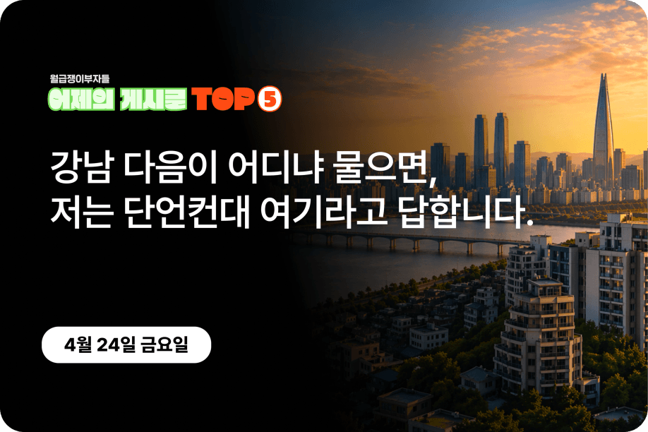 가장 반응이 좋았던 인기글만 담아 ‘어제의 게시글’ TOP5를 소개합니다.