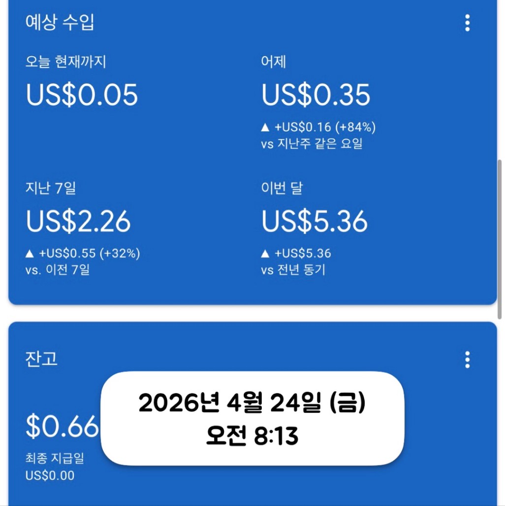 [어예어예] 260421 5번째 수익인증! 누적수익 5달러 달성!!