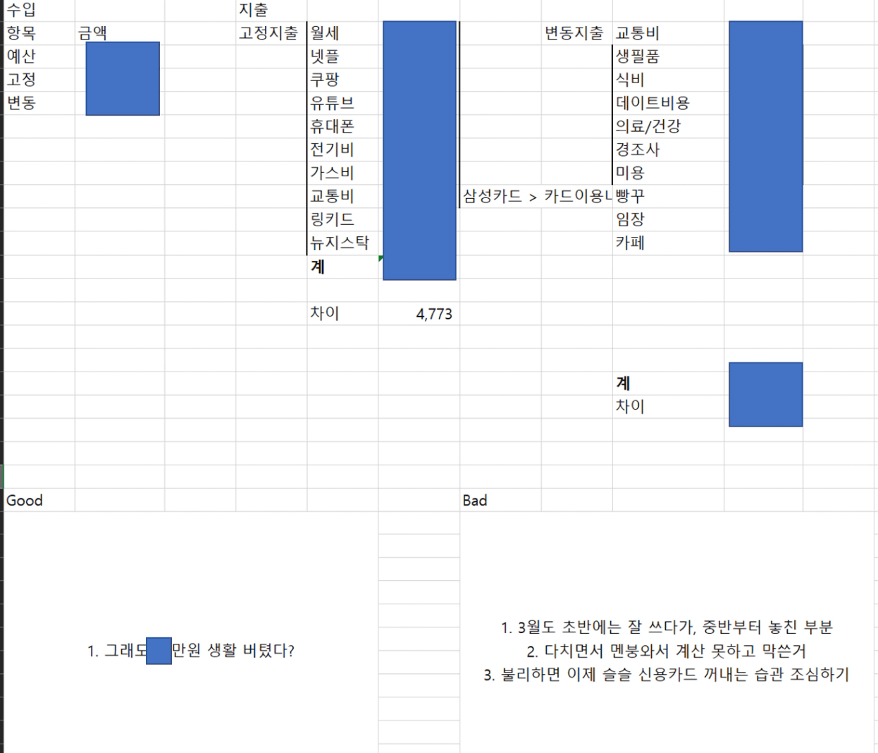 우선 3년동안 매달 가계부를 썼습니다.