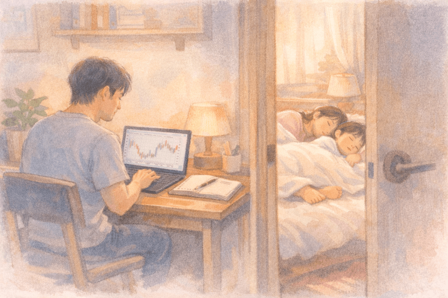 오늘도, 자고 있는 너희 곁에서