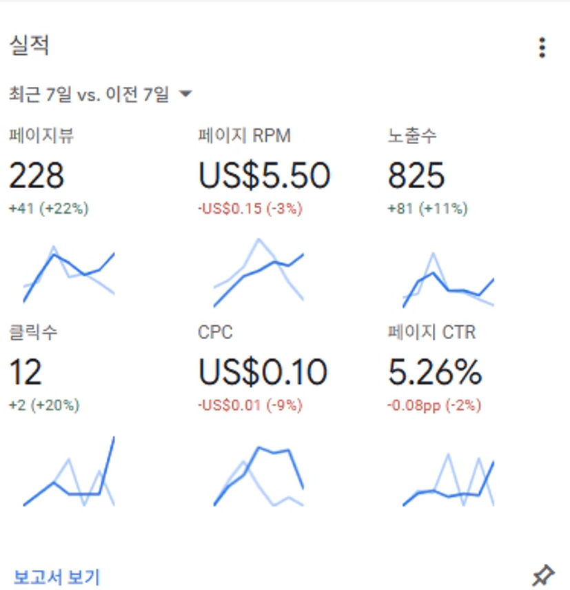 지난주보다 페이지뷰는 늘었으나,,,RPM CPC CTR 모두 하락
