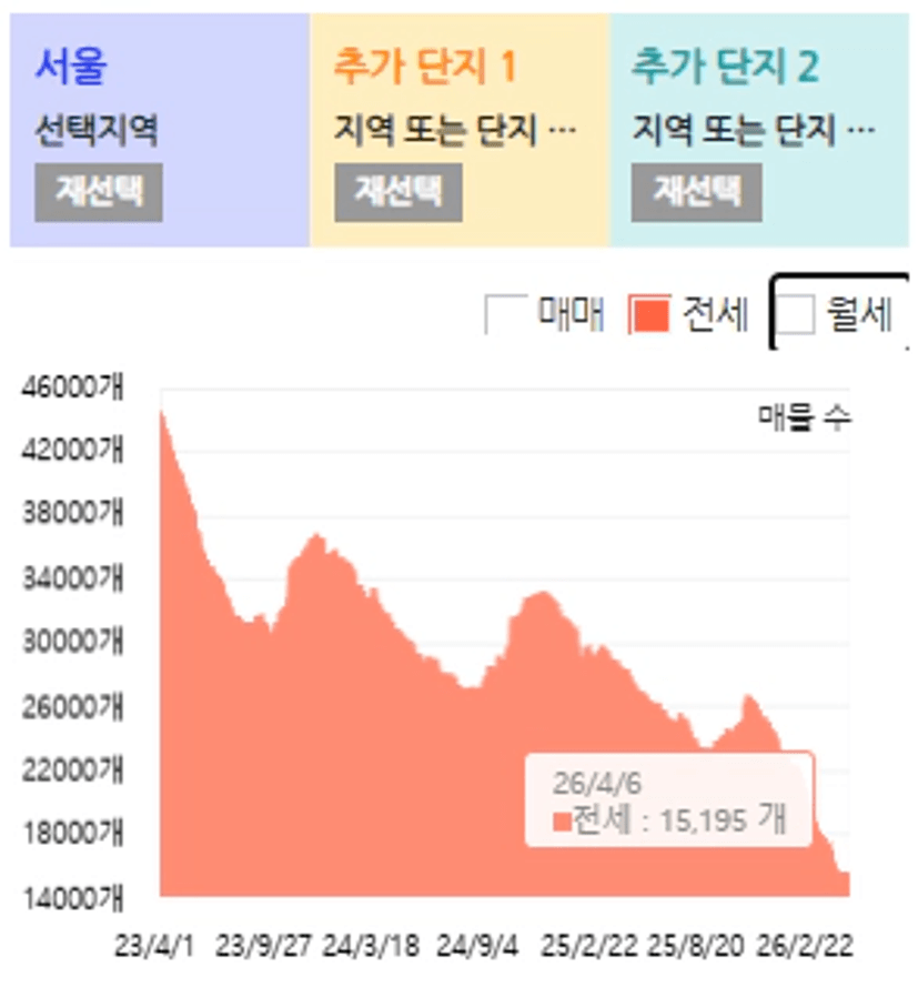 하지만 세입자의 입장에서는 집주인 혹은 매수자가 2~3천만원을 더 준다고 하더라도 당장 이사갈 집이 없습니다. 전월세가 씨가 말랐기 때문이죠. 있더라도 이미 2년 전보다도 훨씬 많이 올라버린 전세가에 같은 단지에 그 정도 돈을 더 얹는다고 해서 옮길 수 있는 형편이 아니죠.
