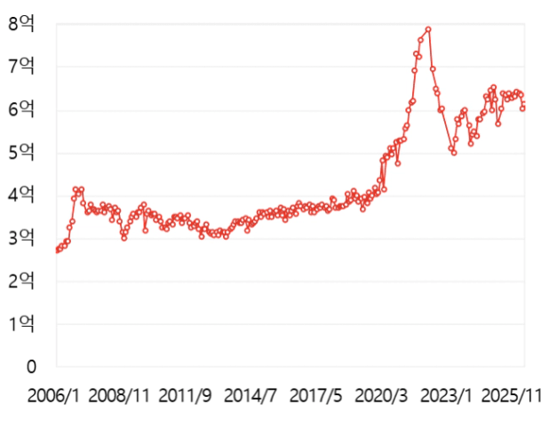 수도권 외곽의 한 단지의 그래프 입니다