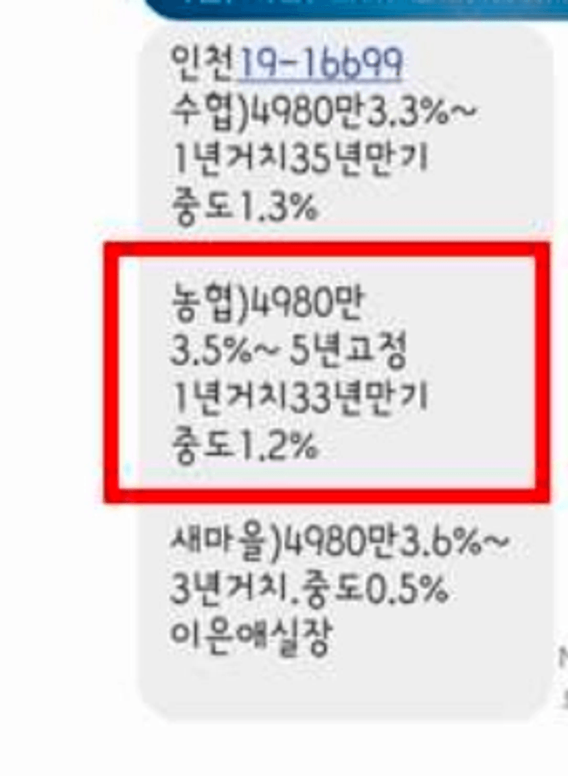 농협)4980만 : 농협은행에서 최대 4980만원까지 대출이 된다는 말입니다