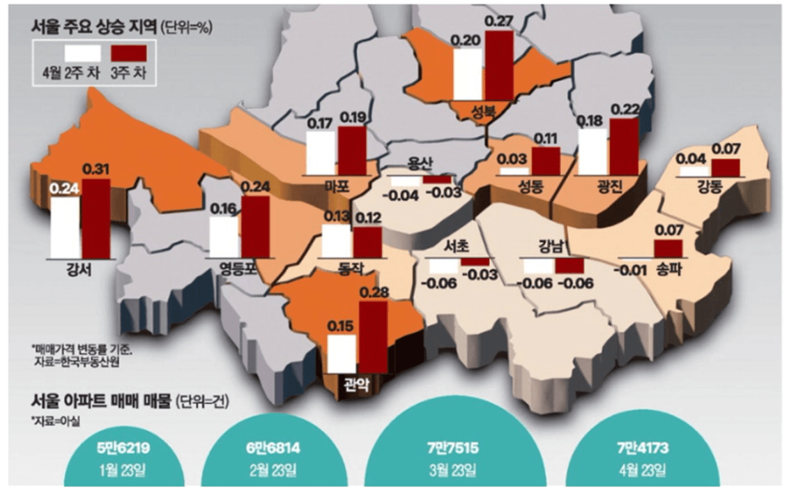 특히 강서·관악·성북처럼 중저가 아파트가 많은 지역에서 상승세가 두드러지고 있습니다.