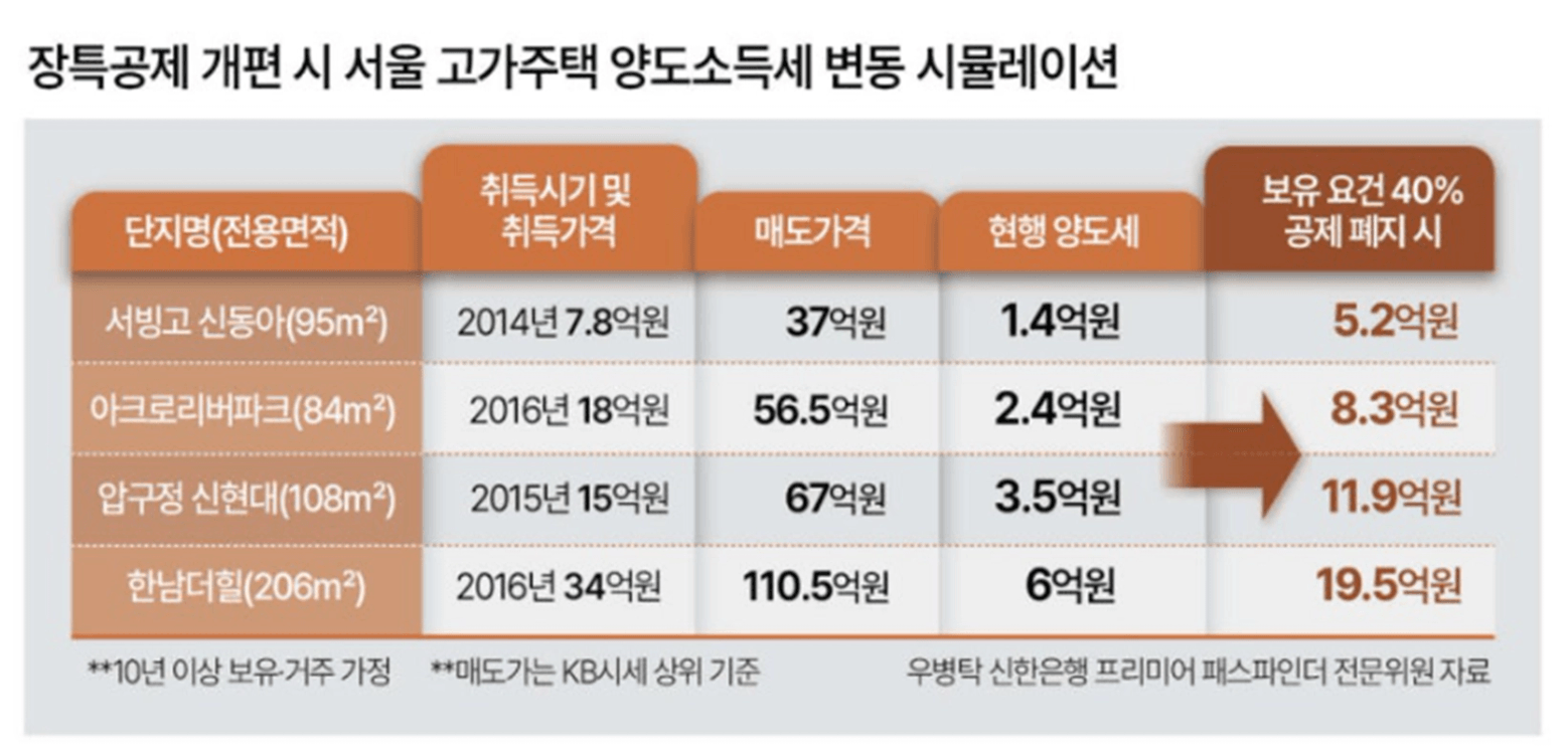 만약 장특공제 혜택이 줄어들거나 사라지면,