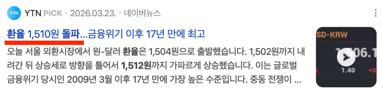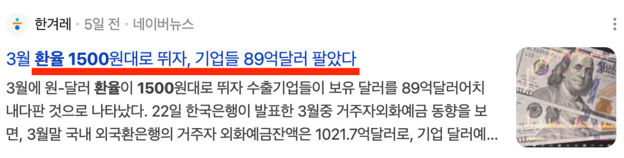 실제로 지난 3월, 환율이 1,500원을 넘어서자