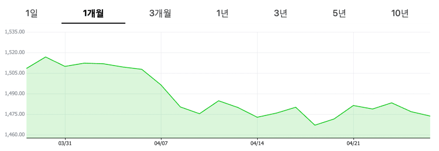 최근에는 다시 1,470원대로 조금 내려오긴 했지만