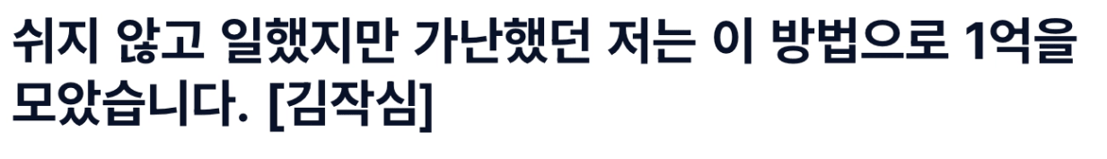 쉬지 않고 일했지만 가난했던 저는 이 방법으로 1억을 모았습니다