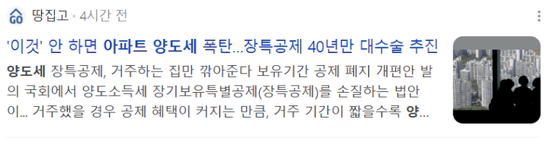 현재 이슈인 '장기보유특별공제(장특공제) 폐지' 논란도 마찬가지입니다.