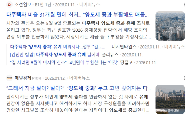 2026년 1월, '다주택자 양도세 중과 유예' 정책의 연장 여부가 뜨거운 감자였습니다.