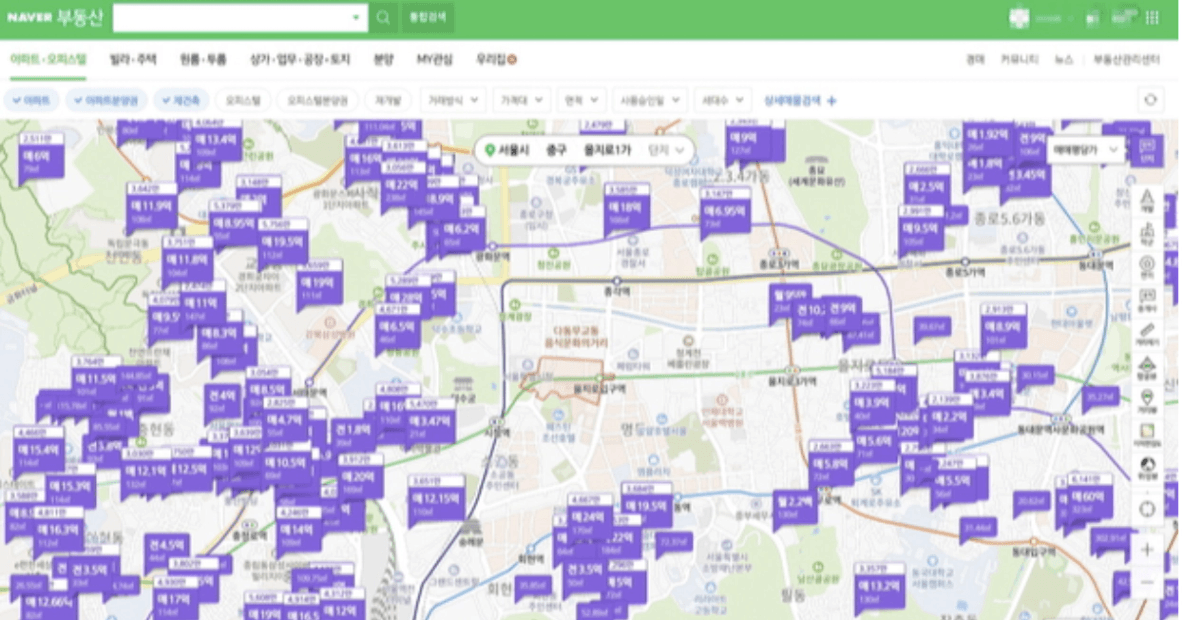 처음으로 네이버 부동산을 열어보게 됩니다.